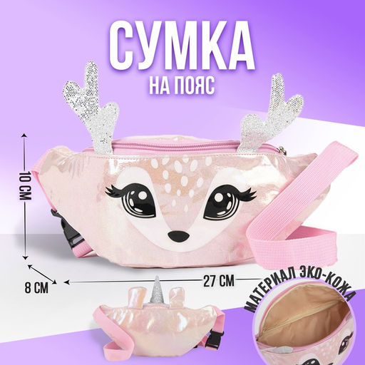 Сумка детская поясная Оленёнок на молнии, цвет розовый