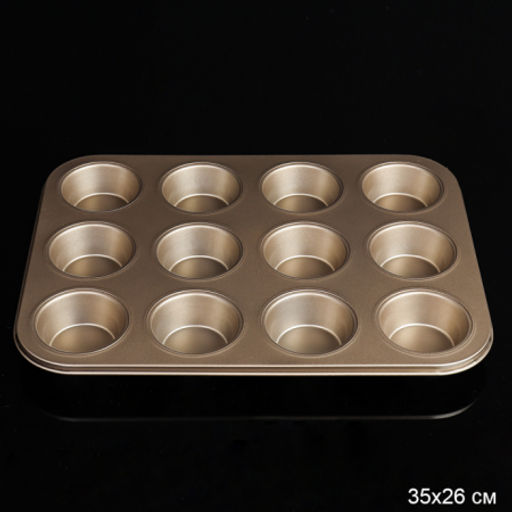 Форма для выпечки 12 ячеек 35х26 см/d=6,5 см;h=3 см/ FZ-35G /уп 60/металл/антипригарное покрытие/0,345