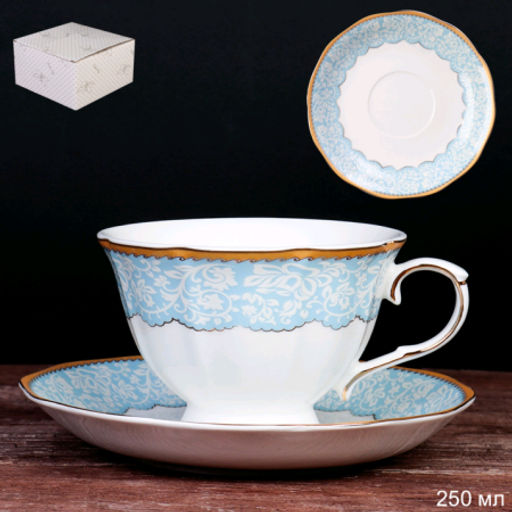 Чайный набор 2 предмета 250 мл на ножке АКЦИЯ фактурный / FY21009 Костяной фарфор