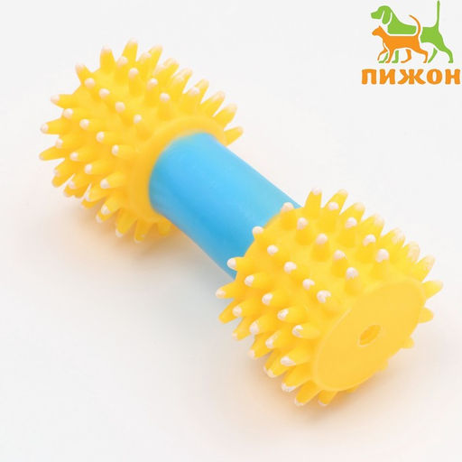 Игрушка для собак пищащая "Массажная гантель", 14 см, жёлтая/голубая