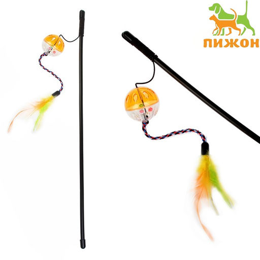 Дразнилка с шариком-погремушкой и перьями, микс цветов
