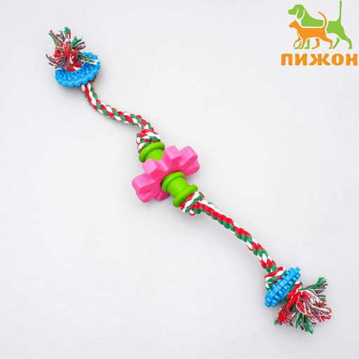 Игрушка канатная с жевательными элементами "Шестерёнки", до 34 см, до 100 г, микс цветов