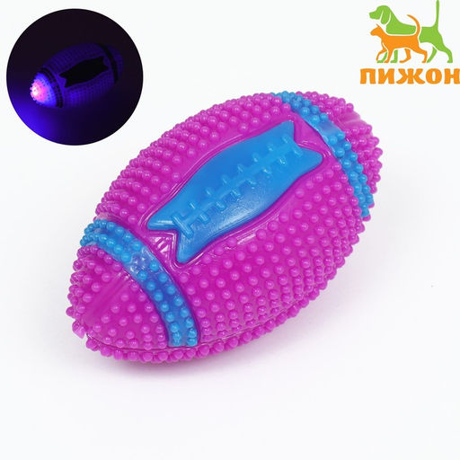 Мяч для собак светящийся с пищалкой "Регби", TPR, 7 см, розовый
