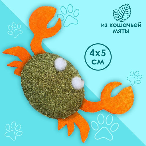 Игрушка для кошек Краб из кошачьей мяты, 4 х 5 см