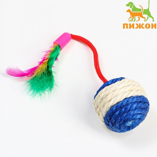 Шар-погремушка сизалевый с перьями, 4.5 см, голубой