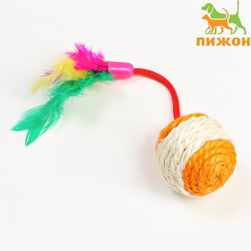 Шар-погремушка сизалевый с перьями, 4.5 см, оранжевый