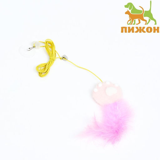 Дразнилка для кошек на креплении с бубенчиком "Лапка с пером", микс цветов