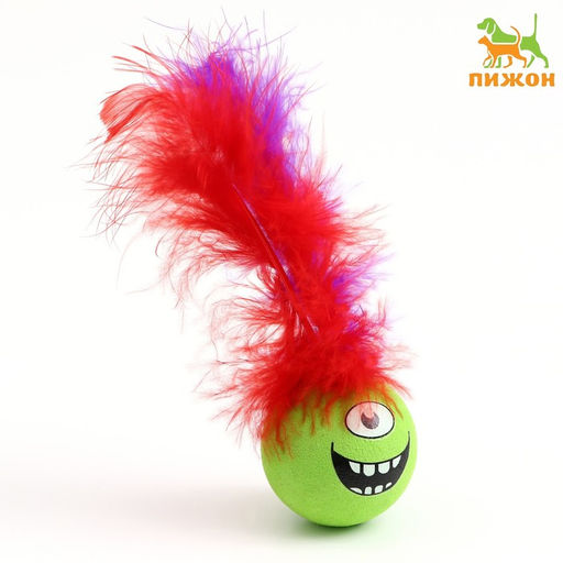 Шарик для кошек с перьями "Эмоции", 5 см, зелёный