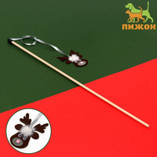 Дразнилка-удочка "Олень" на деревянной палочке для кошек, коричневый, 9935976