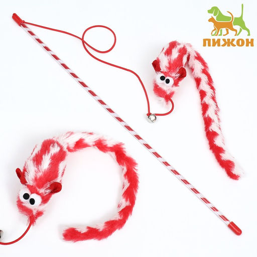 Дразнилка-удочка "Мышь с длинным хвостом", красная