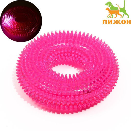 Игрушка светящаяся для собак "Жевательное кольцо", TPR, 12 см, розовая