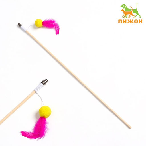 Дразнилка - удочка "Мячик с перьями" на деревянной палочке, микс цветов