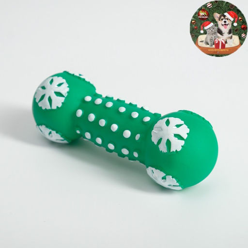 Игрушка-гантель пищащая "Снежинка" для собак, 13 х 5 см, зелёная