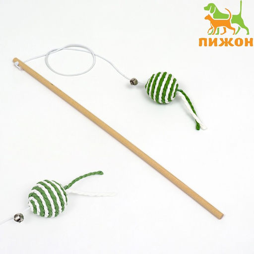 Дразнилка-удочка с шариком на деревянной ручке, зелёная/белая