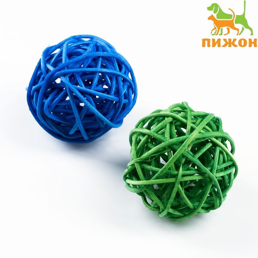 Набор из 2 плетёных шариков из лозы без бубенчиков, 5 см, синий/зелёный