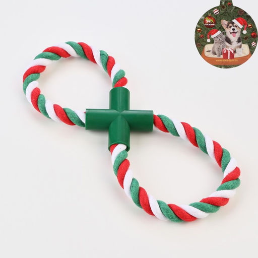 Игрушка тренировочная канатная "Зимняя восьмёрка", до 20 см, 100 г,красная/белая/зелёная 79161