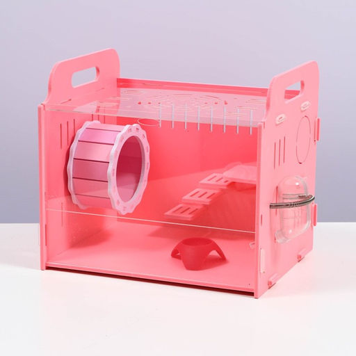 Клетка-переноска для грызунов,акриловая, розовая, 29 х 23,5 х 26 см