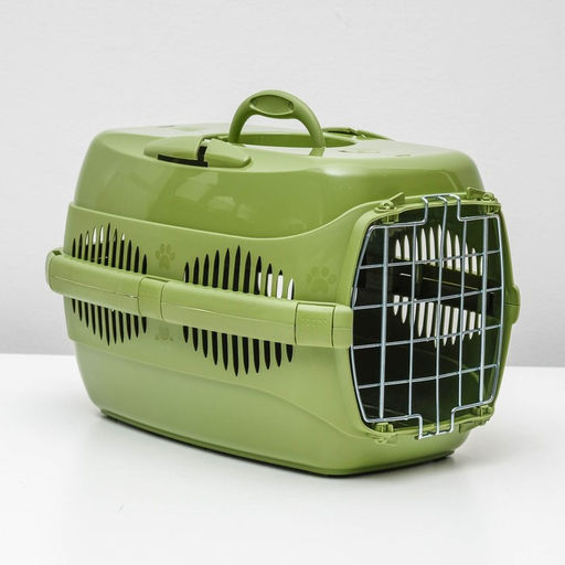 Переноска для животных до 9 кг "Пижон", металлическая дверь, 43 х 29 х 27,5 см, оливковая