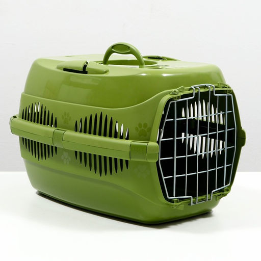 Переноска для животных до 12 кг "Пижон" 49х33х32см, металлическая дверь, оливковая