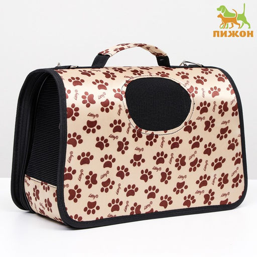 Сумка-переноска каркасная "Лапки Happy", размер S, 37,5 х 17 х 22 см, бежевая