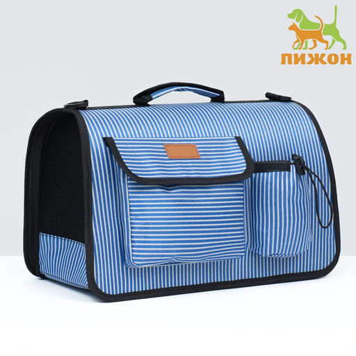 Сумка-переноска с органайзером в полоску, размер М (44,5 х 26 х 40 см), голубой