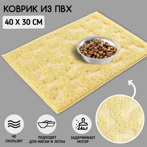 Коврик универсальный под миску и лоток Косточки, 30х40 см, бежевый