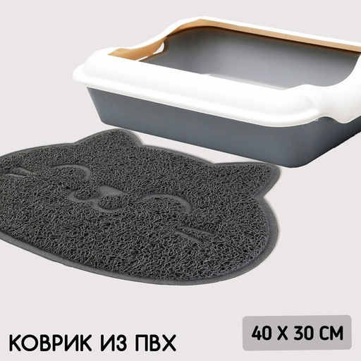 Коврик универсальный под миску и лоток Мордочка, 30х40 см, серый