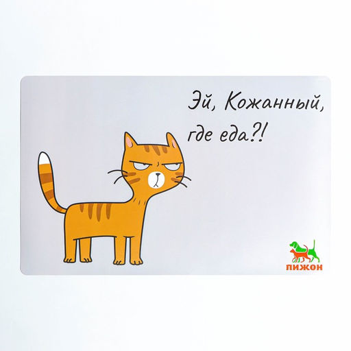 Коврик под миску "Пижон" с нескользящим основанием 43 х 28 см "Эй, Кожаный, где еда?!"