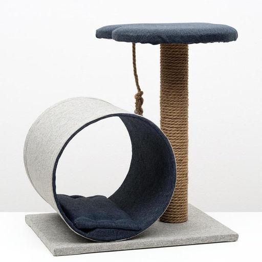 Комплекс для кошек с когтеточкой, с туннелем и полочкой, 44 х 35 х 50 см, рогожка, джут, серо-синий