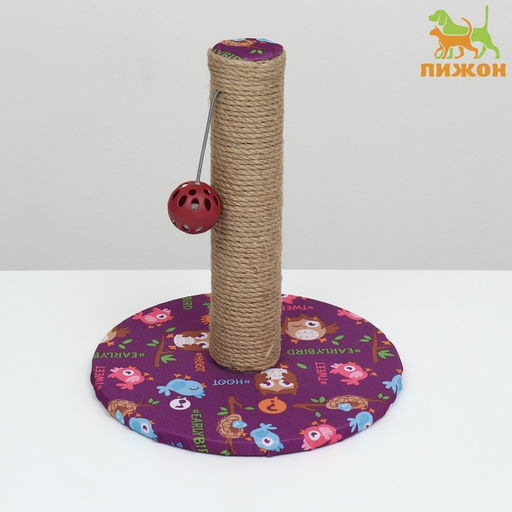 Когтеточка-столбик "Пижон" с шариком, 29 х 29 х 32 см, джут, ткань ПВХ, фиолетовая