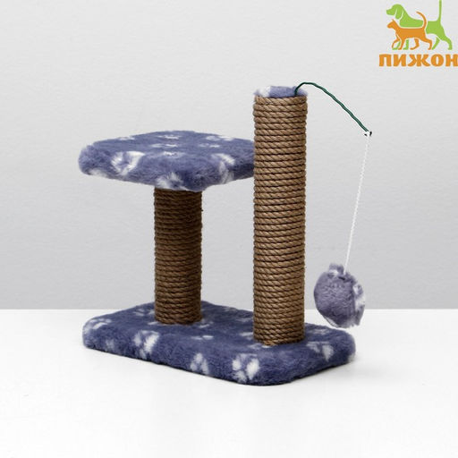 Когтеточка для котят двойная, 30 х 20 х 34 см, джут, серая с лапками