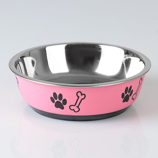 Миска округлая с нескользящим основанием и принтом, 450 мл, розовая