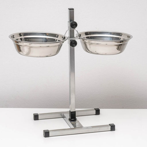 Подставка с мисками, 2 х 1,5 л, высота 50 см, разборная с верхним фиксатором, хром