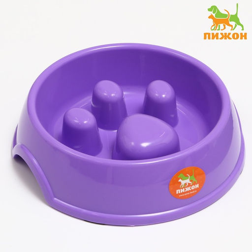 Миска для медленного кормления "Лапа", 22,5 х 23 х 6,5см, фиолетовая