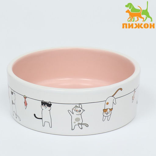 Миска керамическая "Весёлые котики" 300 мл 12,5 x 4,5 cм, бежево-белая