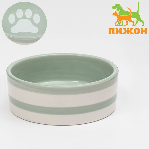 Миска керамическая "След" 300 мл 12,5 x 4,5 cм, серо-зелёная в белую полоску