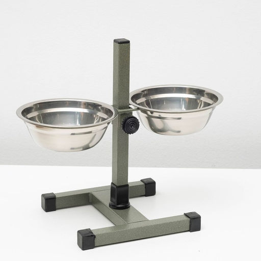 Подставка с мисками, 2 х 500 мл, высота 30 см, разборная, зелёная