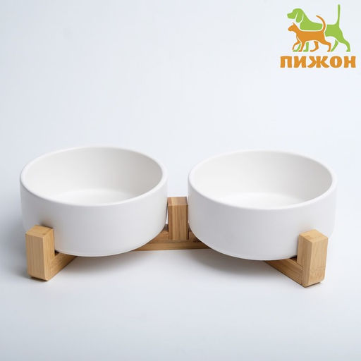 Миски керамические двойные на подставке 2 х 450 мл 28,5 х 15,5 х 7 см, белая