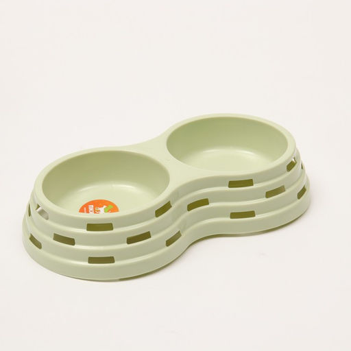 Миска рельефная пластиковая двойная 2 х 160 мл , 25 х 14 х 5 см, зелёная