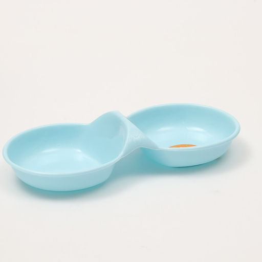 Миска двойная пластиковая 2 х 160 мл, 24 см х 11,5 см х 3 см, голубая