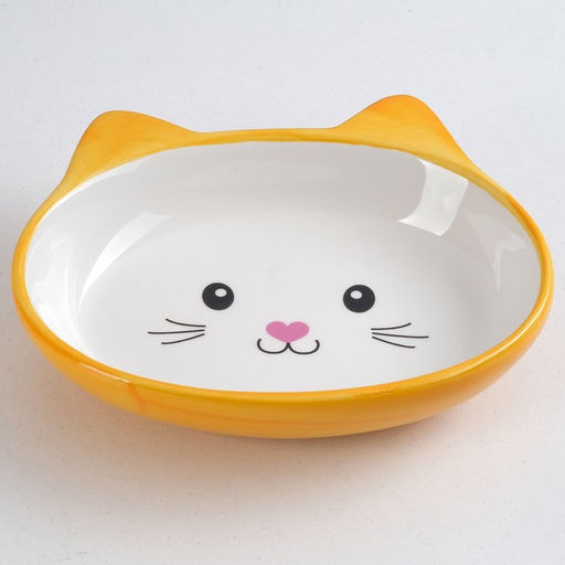 Миска керамическая овальная "Кошачья мордочка" 200 мл 14 х 12 х 3,5 см, жёлто-оранжевая