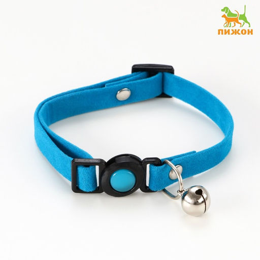 Ошейник кошачий мягкий с бубенчиком, 30 х 1 см, текстиль, голубой