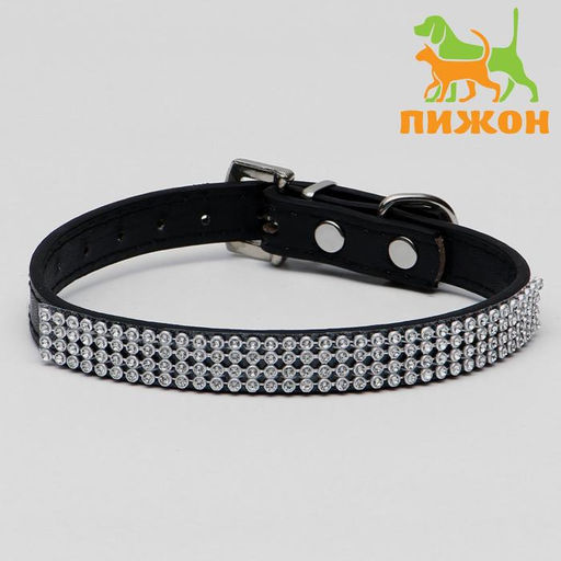 Ошейник со стразами в 4 ряда и стразы на пряжке, 38 х 1,5 см, ОШ 26-33, чёрный