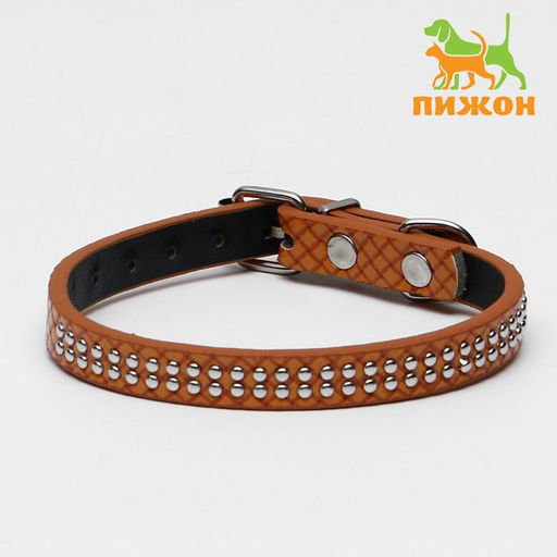 Ошейник рифленый с 2 рядами клепок, 33 х 1,2 см, ОШ 23-29, коричневый