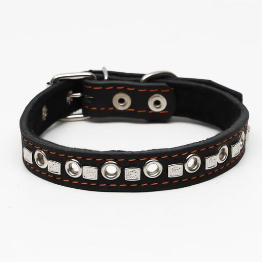 Ошейник кожаный на синтепоне украшенный, безразмерный, 47 х 2 см, ОШ 28-39 см, чёрный