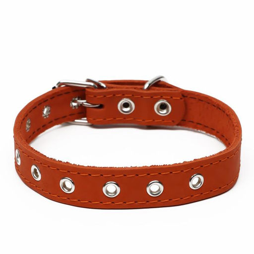 Ошейник кожаный однослойный, безразмерный, 56 х 2,5 см, ОШ 17-44 см, оранжевый