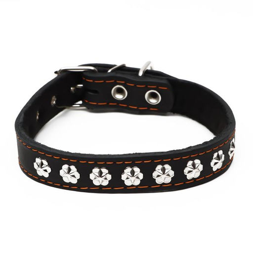Ошейник кожаный на синтепоне, украшенный, 55 х 2.5 см, ОШ 35-45 см, черный