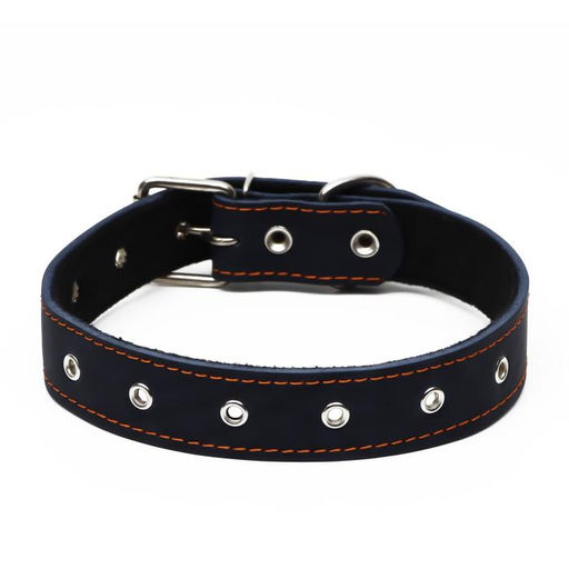 Ошейник кожаный на синтепоне, безразмерный, 71 х 3,5 см, ОШ 29-62 см, синий