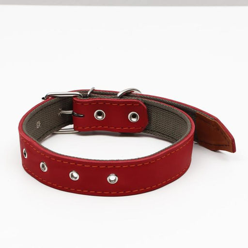 Ошейник комбинированный кожа/брезент, безразмерный, 70 х 3,5 см, ОШ 25-60 см, красный