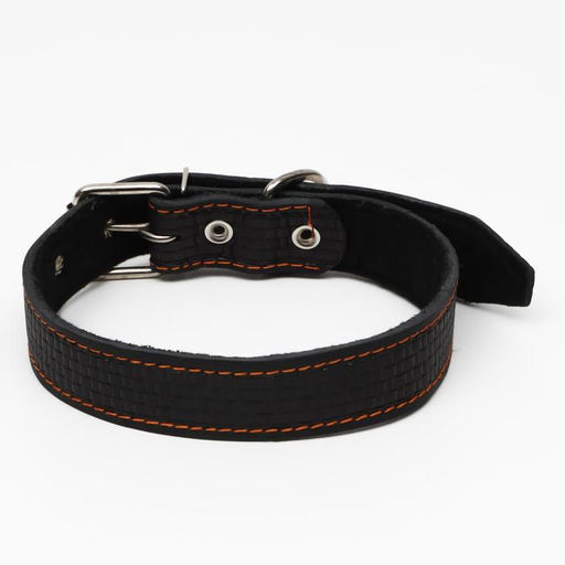 Ошейник кожаный с тиснением на синтепоне, 70,5 х 3.5 см, ОШ 45-60 см, чёрный